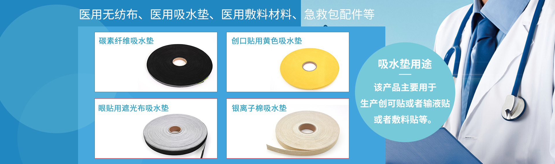 公司主要產品為醫用無紡布的延伸,如醫用無紡布,醫用吸水墊、醫用敷料、醫用石膏襯墊等一次性醫用耗材。
